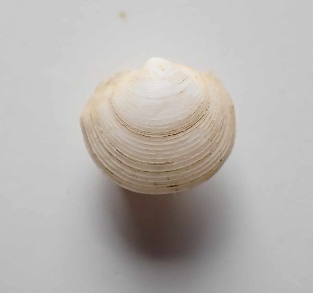 2025年02月16日 マルツキガイモドキ 肥後目録掲載標本番号642Lucinoma japonica Habe 1958ツキガイ科 マルツキガイモドキ串本町潮岬沖ドレッジ採集 7.8㎜ 1979年採集殻は小型で、膨らみが強いです。表面の成長肋は、弱めです。肥後目録では、日本海に生息する種類と書かれていましたが、相模湾産貝類での記録で、太平洋岸にもいるようです。