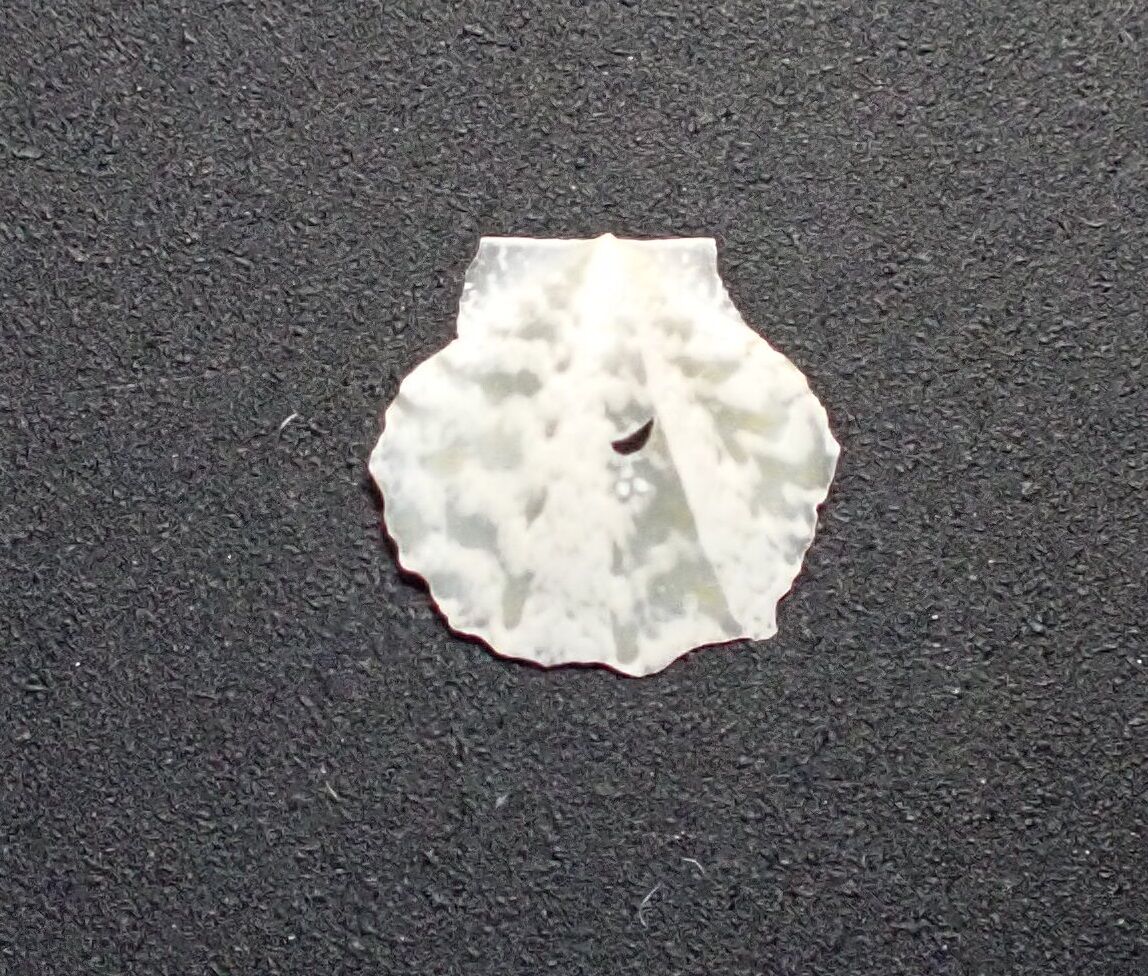 2025年06月10日 Parvamussium pauciliratum Parvamussium pauciliratum E.A.Smith 1903ワタゾコツキヒガイ科鹿児島県奄美大島大島海峡水深80mドレッジ揚り 6.4㎜ 1993年採集殻は光沢が強く、透明な殻に白色の斑があります。
