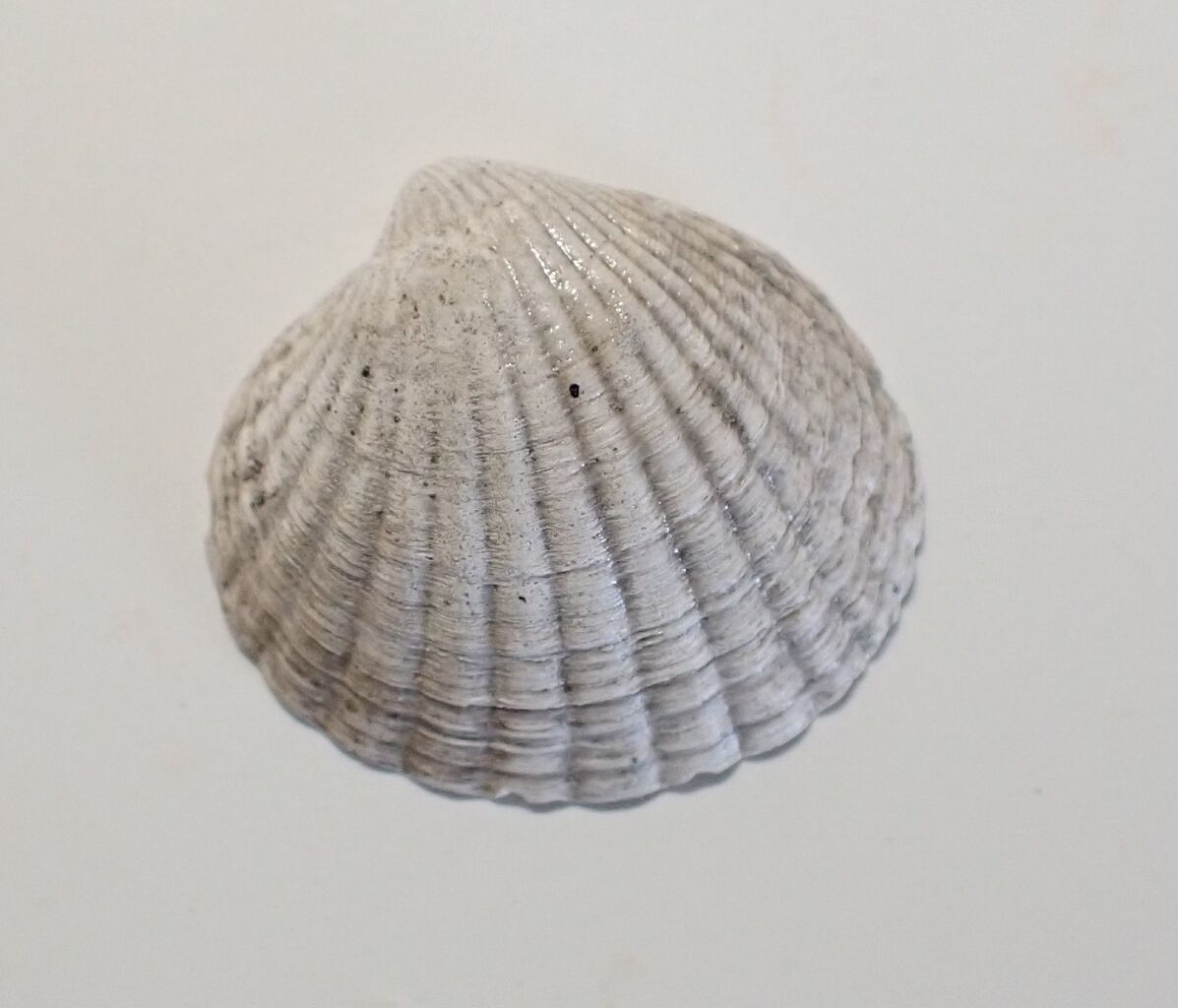 2023年12月19日 オオマルフミガイ 肥後目録掲載標本番号812Cyclocardia crebricostata Krause 1885トマヤガイ科 オオマルフミガイ北海道寿都郡 24.3㎜ 2023年採集標本は化石種です。殻表面には、放射状に25本程度の肋があります。